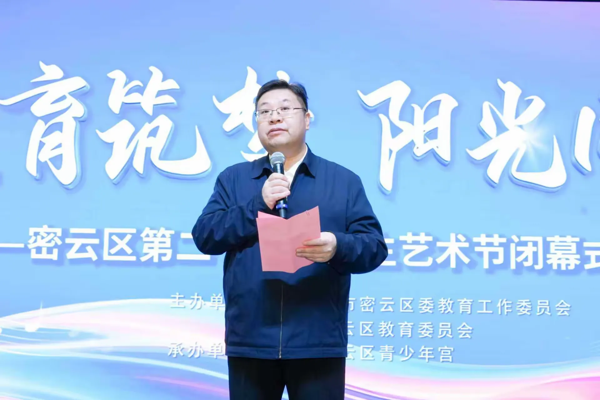 密云区教委主任杨福军向获奖集体与个人表示祝贺,并向所有支持美育工作的教育工作者与社会各界致谢。他强调,美育是落实立德树人根本任务的重要载体,区教委将持续强化顶层设计,夯实美育根基;打造特色品牌,丰富育人载体;深化协同共育,凝聚发展合力,推动全区美育工作持续高质量发展。