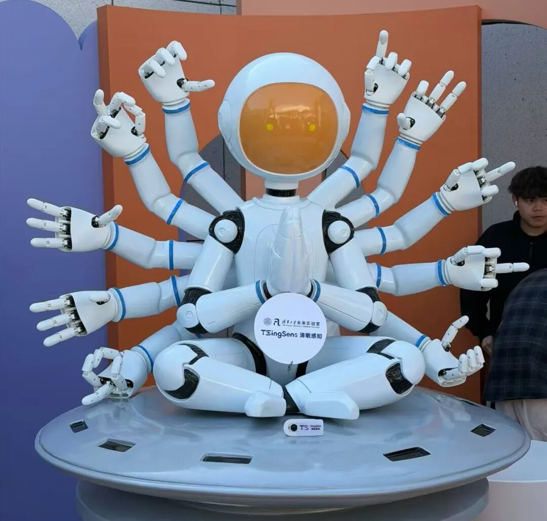 当然,抽象的项目也不少。我看到了很抽象的千手观音机器人,还看到AI中医指环,我有点怀疑,玩AI指环的人,和相信中医的人,很可能不是同一批人。