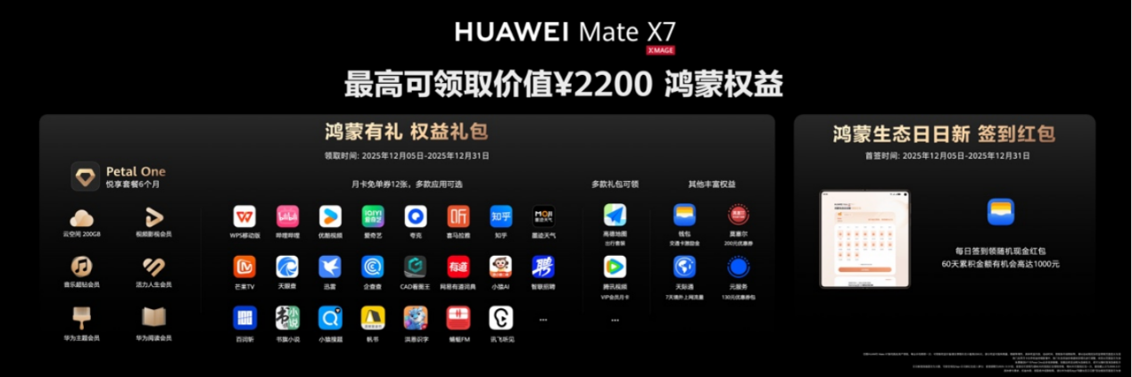 作为一名追求用机效率的科技博主,在折腾新机硬件之余,也追求手机给日常办公带来的高效与便捷,特别是随新机附赠的“新机福利”是真的香。不得不说,华为是真的大手笔,为华为Mate X7用户准备了最高可领取价值2200元的新机权益礼包:鸿蒙有礼权益礼包+60天随机现金红包。