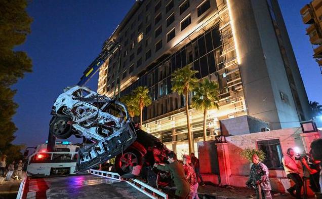 突然,天空中传来一阵呼啸声,以色列的战机如死神降临,一枚炸弹精准落下,瞬间,汽车被火光吞噬,化为一堆废铁,车内的欢声笑语戛然而止,只剩下无尽的绝望与恐惧。