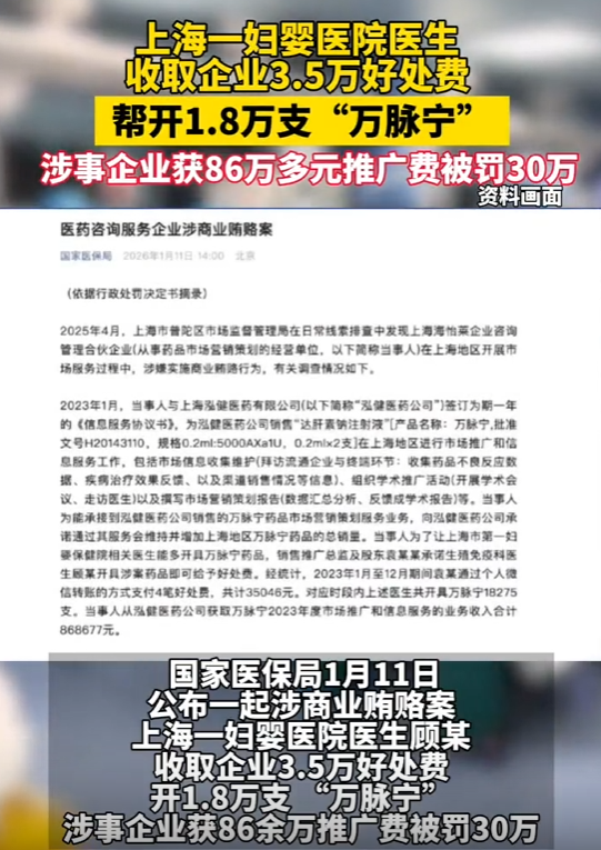 药贩子(海伊来公司)为了推一款叫“万脉宁”的药,私下里给顾医生塞了35046元。