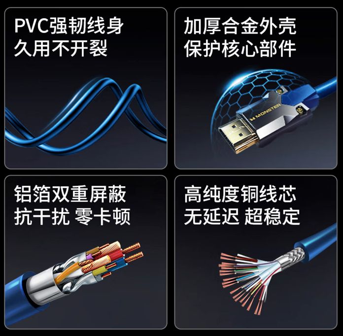 所以我对HDMI线的选择变得格外谨慎。毕竟一根靠谱的线材,不仅能保证音画传输稳定,更能像“保护盾”一样,减少热插拔(偶尔不小心操作)带来的风险。试了好几款线材后,我最终锁定了魔声M3000系列HDMI线。