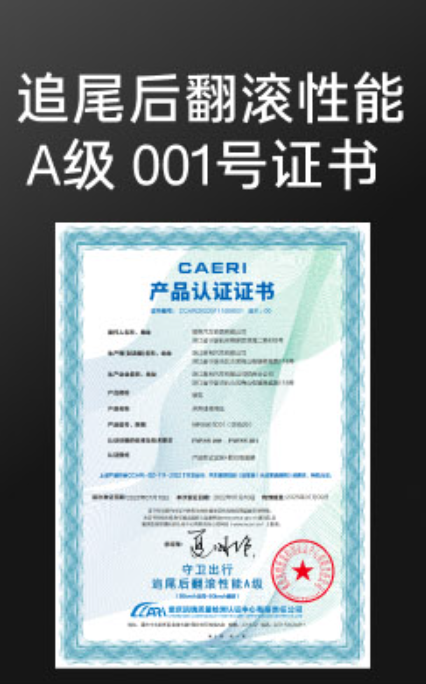 此外,领克09完成了中国首个“超标”尾碰叠加连续翻滚测试:85km/h追尾叠加60km/h连续翻滚,最终获得全优成绩,并取得“追尾后翻滚性能A级”001号认证。这意味着事故中车主全程无伤,完全依赖于车辆设计与技术实力,而非偶然因素。