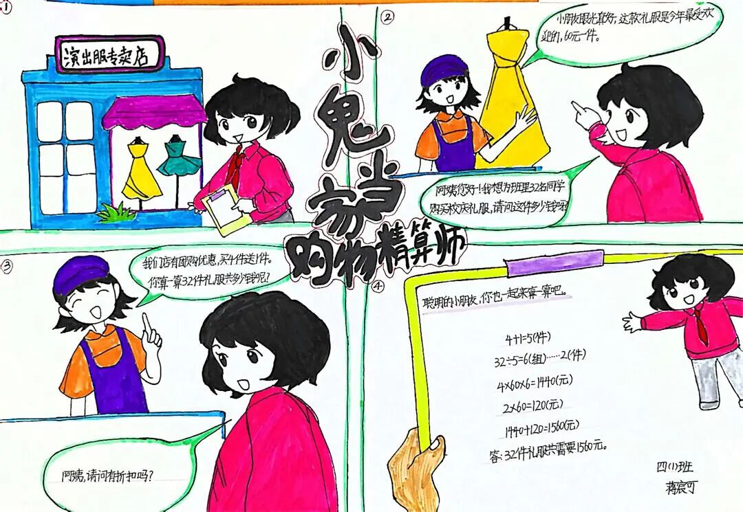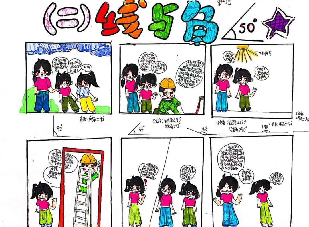 数学是理性的思考,绘画是感性的表达,当两者碰撞,便迸发了奇妙的火花。活动通知一经发布,同学们热情高涨,纷纷化身“数学创意小画家。”课堂上,他们认真钻研数学知识点,从四则运算的趣味应用到几何图形的奇妙组合,从数学名人的励志故事到生活中的数学奥秘,每一个灵感都源于对知识的热爱;课余时,他们精心构思画面,用细腻的线条勾勒场景,用鲜艳的色彩渲染氛围,将枯燥的数学原理转化为易懂又有趣的连环画故事情节。有的同学以“数学王国大冒险”为主题,通过主角的探险经历讲解数学难题;有的同学聚焦生活场景,用连环画展示超市计价、家庭理财中的数学智慧,让大家发现“数学藏在生活的每一个角落。”