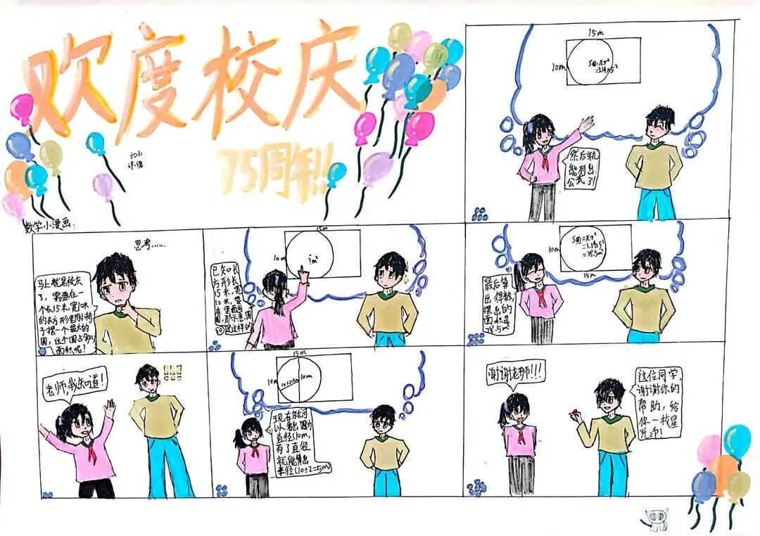 “原来数学可以这么有趣!”“画连环画的过程中,我发现以前觉得难的知识点居然变简单了……”活动结束后,同学们纷纷分享了自己的收获。此次数学连环画故事创意实践活动,不仅锻炼了同学们的绘画能力与创新思维,更让大家感受到了数学的魅力,实现了“在创作中理解知识,在表达中爱上数学”的育人目标。同时,同学们用充满想象力的作品为建校75周年送上祝福,展现了新时代少年的智慧与创新。