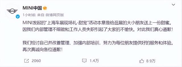 如果是前者,那可以说宝马mini的这次负责人的实际业务能力太差,要知道上海车展是属于A级车展,这个级别的车展不是4S店参展,而是品牌方参展,这可是代表品牌的,代表你们在整个中国地区的,你说你这样搞国别歧视,是不是在给自己招黑呢,还是内部管理的刻意为之,就是要贬低区别对待中国人?这可是在中国的地盘!