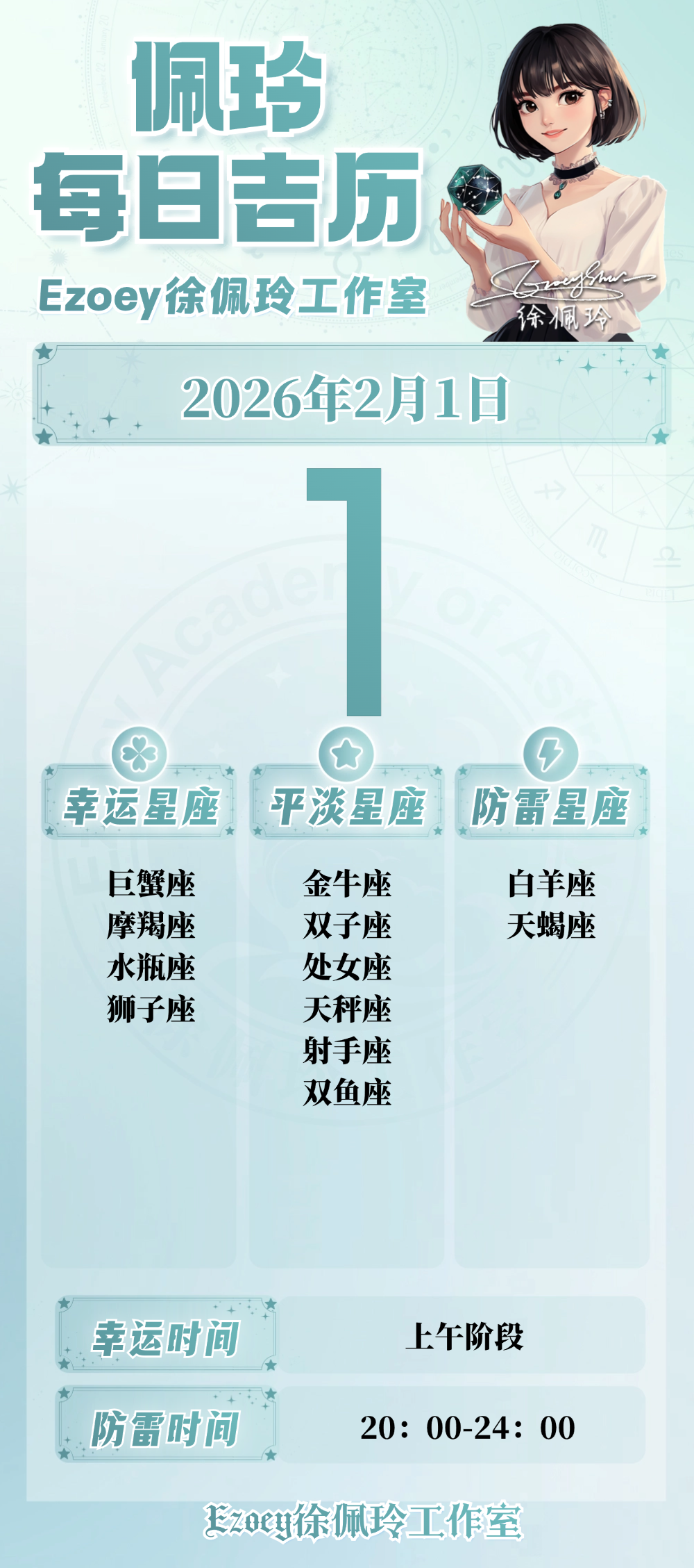 【2.1日播报】欢乐魅力日 幸运星座:巨蟹座、摩羯座、水瓶座、狮子座——Ezoey徐佩玲26年星座播报
