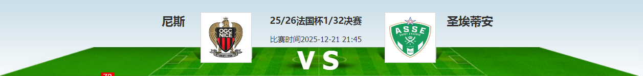 本场比赛是法国杯1/32决赛的一场较量,由主场的尼斯迎战圣埃蒂安。尼斯目前在法甲取得了5胜2平9负的成绩,积17分排在积分榜第13位;圣埃蒂安目前在法乙中取得了9胜3平5负的成绩,拿到了30分排在积分榜第2位。