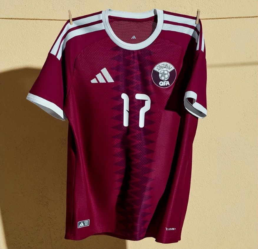 卡塔尔的球衣一直采用与国旗一致的深栗色,简单明快。