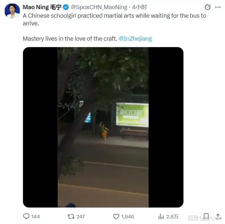 12月25日,外交部发言人、新闻司司长毛宁在海外社交平台转发了这段视频,并写下英文评语:“精湛源于对技艺的热爱。”