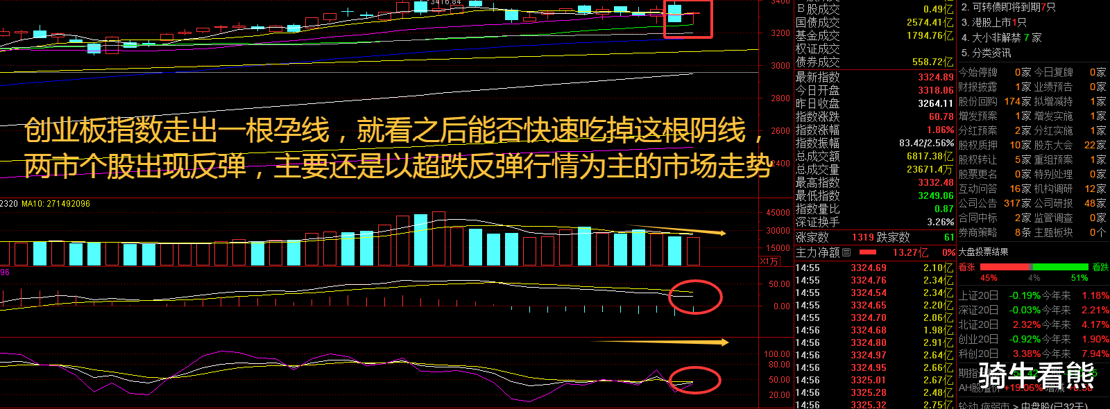 创业板指数周二出现中小创个股两极分化的走势,大宗商品板块个股集体大跌,这也是近期“涨多必跌”的规律。多家国际资管巨头在近日发布的2026年投资展望中认为,中国股票估值仍具吸引力,市场有望延续上涨趋势,其中,科技、医药、新能源等领域值得重点关注。接下来注意创业板指数能否在3310点之上稳住。