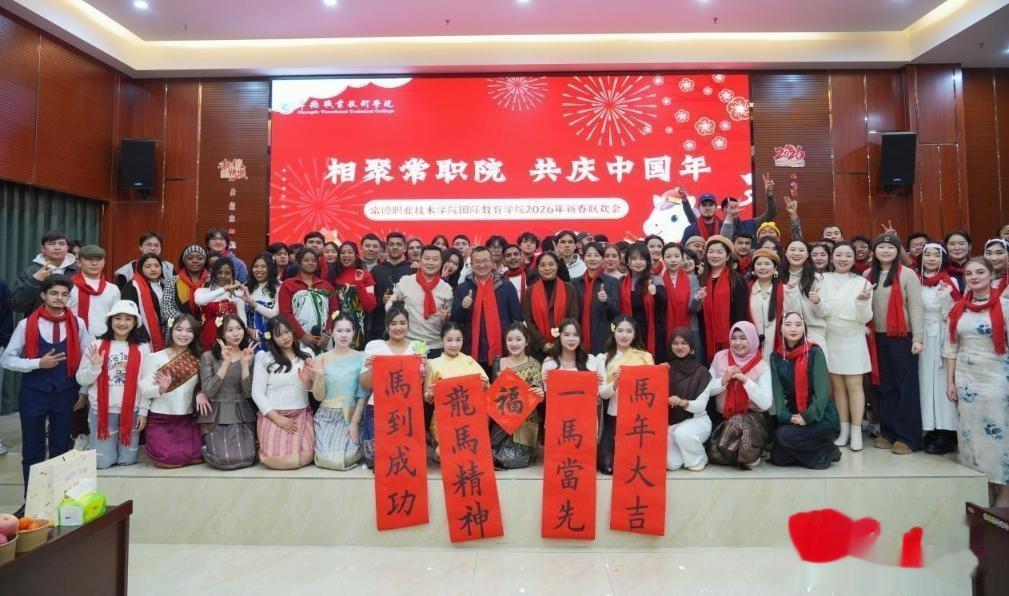 常德日报记者 李龙 通讯员 段妤昕 文/图 近日,常德职业技术学院国际教育学院成功举办“相聚常职院,共庆中国年”2026年新春联欢会。常德职业技术学院院长周华及学院相关部门主要负责人与中外师生同贺新春、共话情谊。