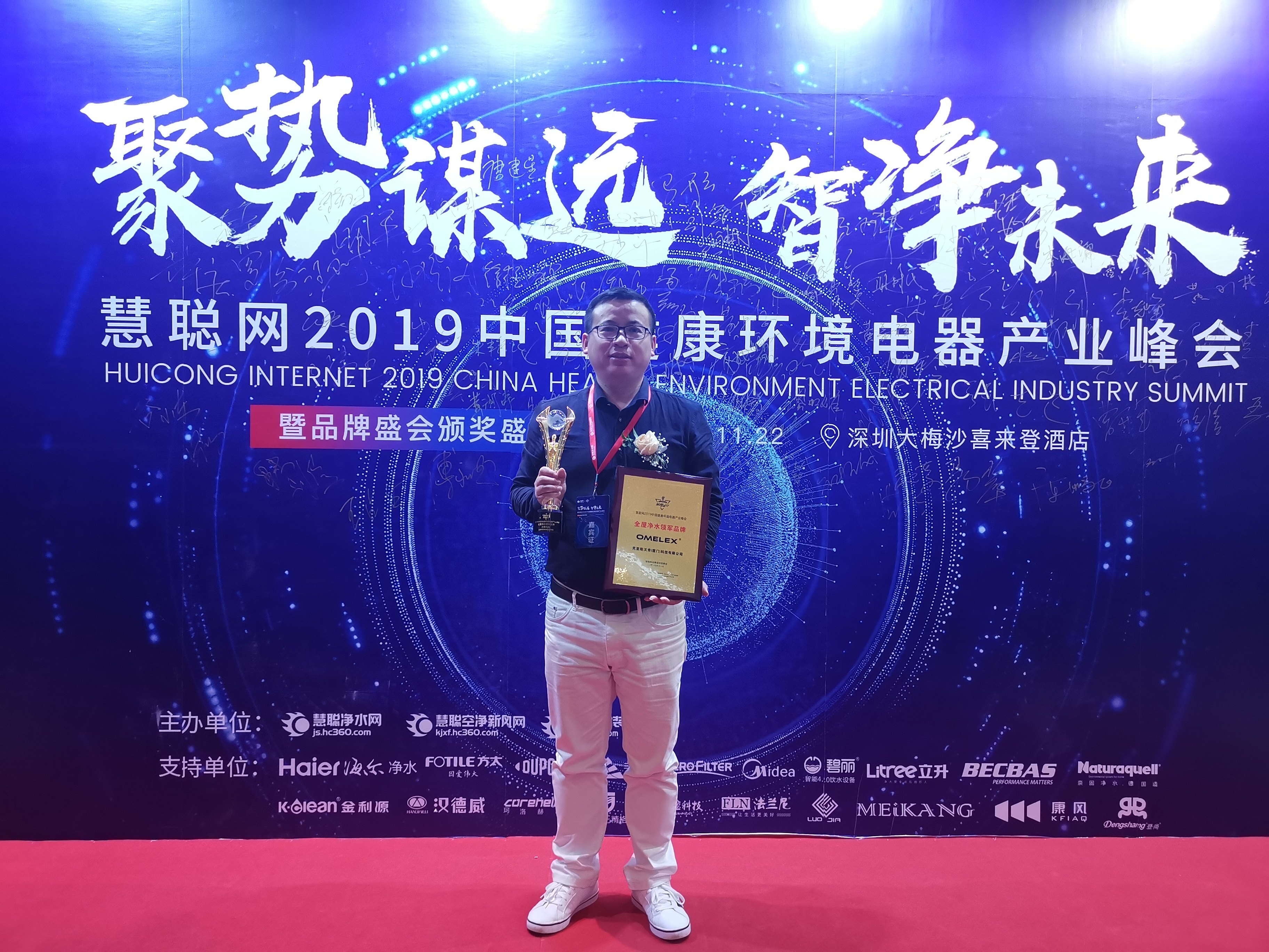 11月22日,由慧聪净水网主办的2019中国健康环境电器产业峰会暨品牌盛会颁奖盛典活动在深圳大梅沙京基喜来登度假酒店隆重举行,来自全国各地的100+头部企业领袖、技术大咖、行业专家,以及来自全国各地近300名优质经销代理商共同见证了此次盛会。作为本次峰会的特邀嘉宾,OMELEX欧美克斯荣获在本次净水行业品牌盛典中年度【全屋净水领军品牌】殊荣。