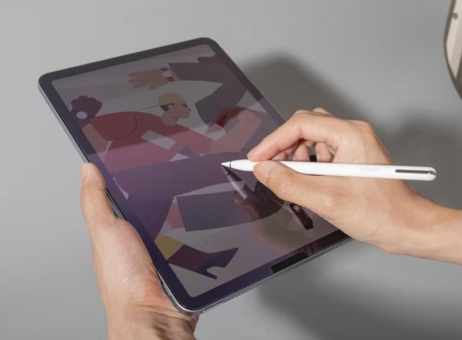这款电容笔采用哑光工艺打造,上手触感细腻亲肤,14克的重量控制得恰到好处,握持轻盈不累手。而且笔身自带电量指示灯,剩余电量一目了然,能精准把控充电时机,避免断电尴尬。书写体验上,它支持灵敏的倾斜压感功能,笔尖角度变化能带动线条粗细自然过渡,不管是书写还是绘画都能呈现丰富层次感。强力磁吸设计还能让它牢牢吸附在iPad侧边,移动携带不易掉落。满电续航约11小时,满足日常使用绰绰有余,只不过它的电量消耗略快,长时间创作需频繁补电,可能会影响创作。
