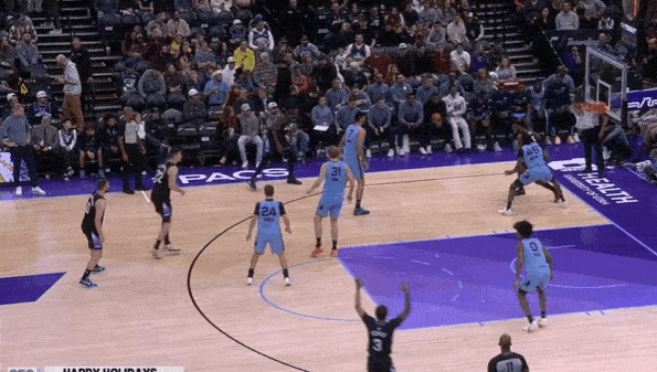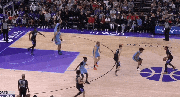 爵士体系确实会让一些内线球员执行无球借掩护战术。这个回合菲利执行“Stagger Slip“上提接球后顺势启动突破。