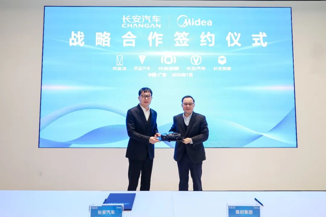 日前,长安汽车与美的集团在佛山签署全面战略合作协议,长安汽车董事长朱华荣与美的集团董事长兼总裁方洪波出席见证,双方官宣携手打造人・车・家智慧生活体系,成为跨产业融合的又一落地案例。