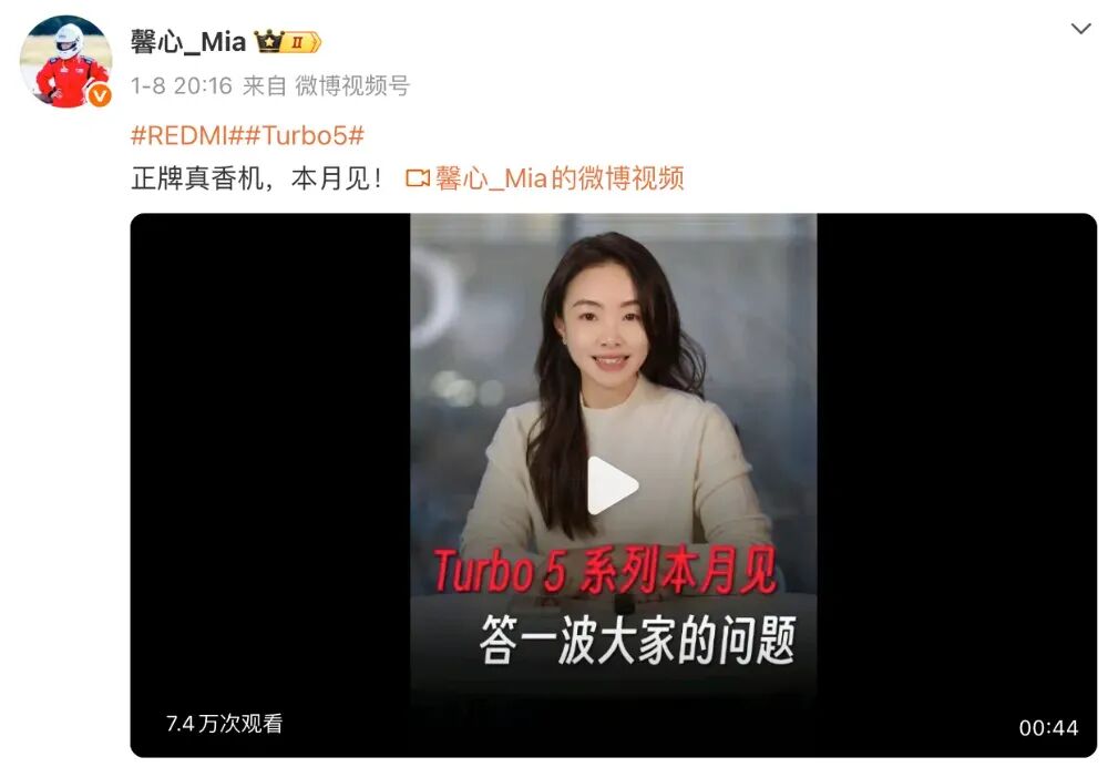 目前,REDMI官方还没有公布这款新机的具体发布时间信息,但胡馨心在今天确认“大家关心的Turbo5系列,很快有消息,也能吃上国补”。