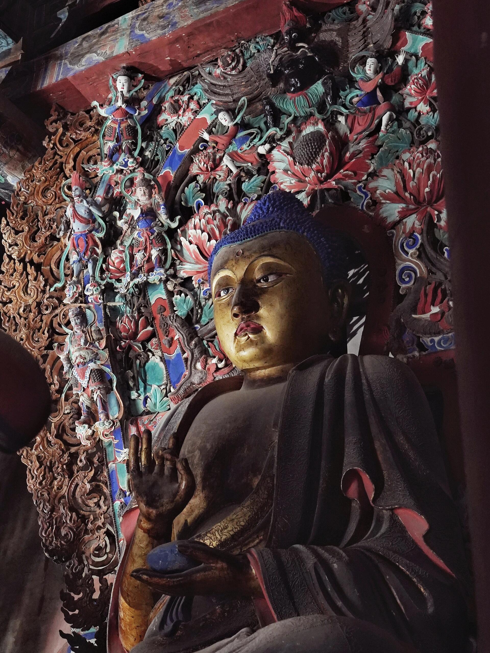 大雄宝殿的门虚掩着,推开门,一股子潮味裹着香火气扑过来,呛得人直皱眉。最先撞见的是三世佛,高得快顶着梁了,莲花台座的边缘被香客摸得发亮,能照见人影。守寺的老郑说这佛像是明代的,用的是当地的红胶泥,里面掺了麻丝,所以几百年没裂。释迦佛的右手结着法印,指尖的金箔掉了大半,露出底下的黄土色,像指甲盖掉了块。最奇的是佛的衣褶,层层叠叠往下垂,褶子里藏着些细铁丝,老郑用手捋过,说这是工匠用镊子盘的,现在还能活动,去年有个裁缝来,对着褶子裁了件旗袍,说比苏绣的针法还讲究。