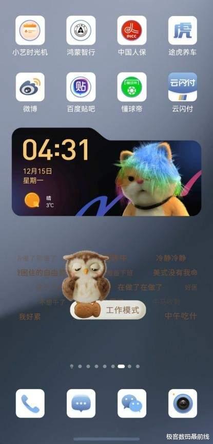 当然,最近华为主题还上新了不少其他好玩的百变卡片合集,比如《桌面巅成了我想要的样子》里边,有一个《猫头鹰趣味打工人弹幕》,就是咱们的嘴替。