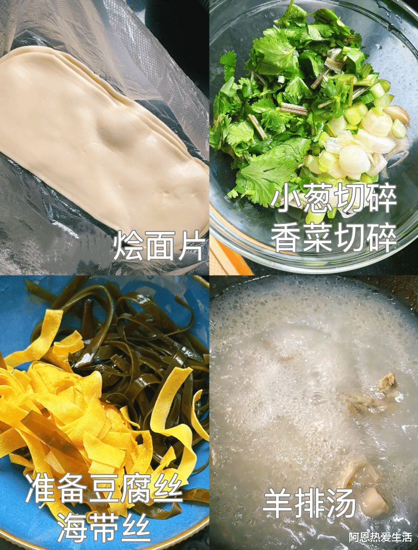 小技巧:熬羊汤千万别加太多调料,盐要最后放,不然羊肉会柴!想汤更白更香,炖的时候可以加一勺羊油,鲜味儿直接翻倍。炖好后捞出羊肉切片,羊汤留着备用。