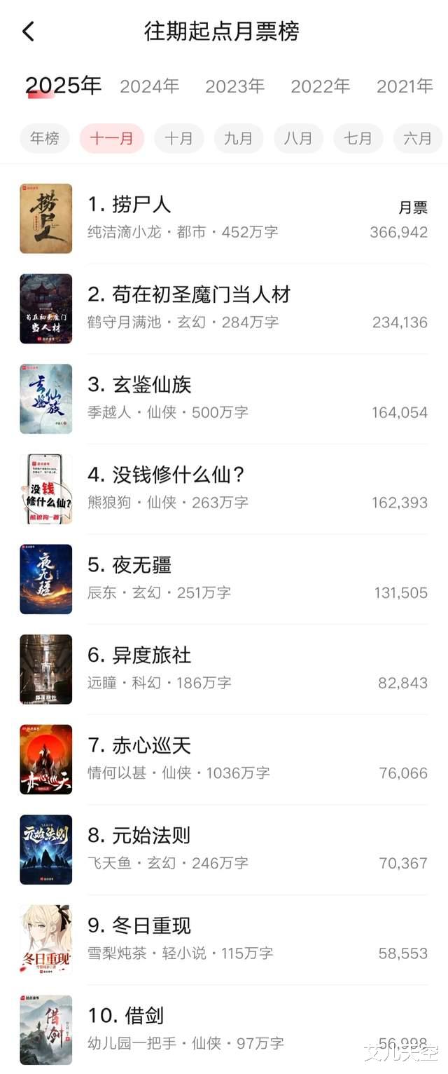 以上就是11月部分作品的月票榜情况,简单记录一下,我们明天再见。