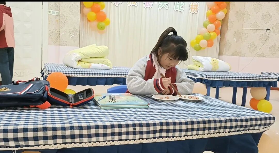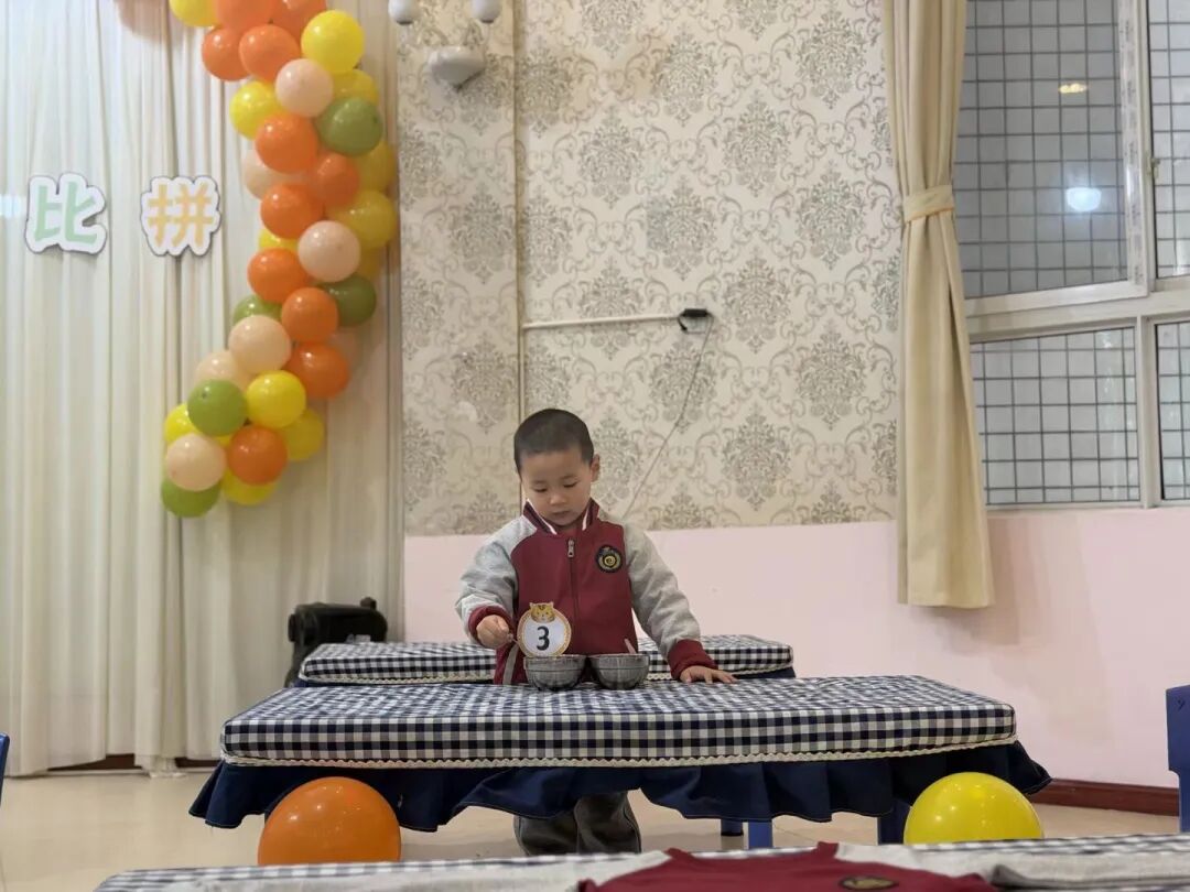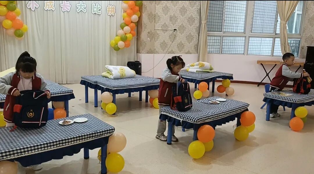 大班哥哥姐姐们自信从容登场,准备一显“身手”!瞧他们利落地穿上外套,叠好被子,迅速地用筷子夹起一颗颗圆滚滚的花生,手法娴熟地整理书包,每一个动作都透着认真与自信。孩子们在超越自我的喜悦中,向着成长又迈出了坚实的一步,为进入小学奠定了良好的基础。
