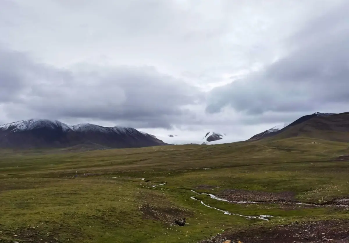 当我们的车轮碾过5170米的海拔,谁能想到我们的眼前是一片高原草场,远远的雪山下,万物寂静,似乎我们才是打扰这片宁静的外来者。