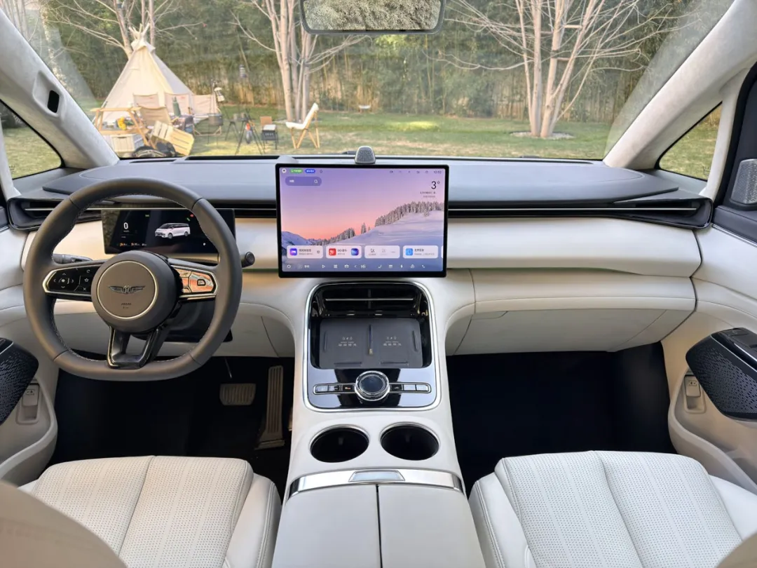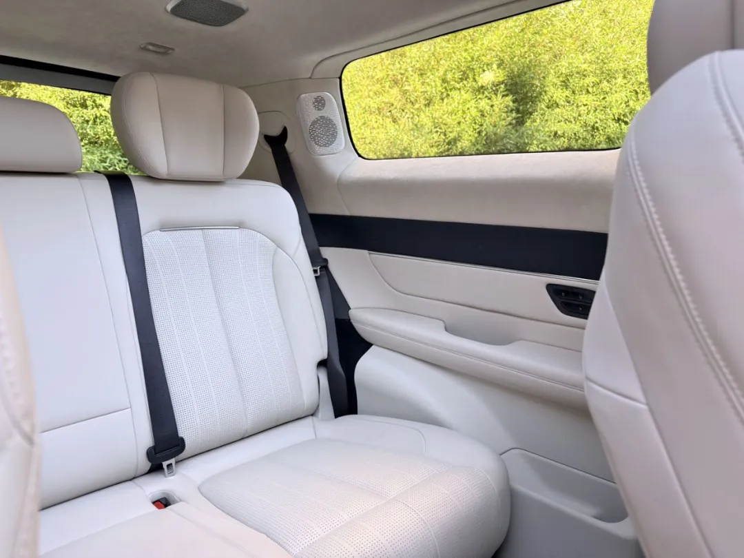 坐进车内,质感与舒适感扑面而来。Alcantara云绒穹顶触感如云端,“步步高升”仪表台、“如意流风”空调出风口融入中式礼序与吉祥寓意,“奇石听涛”高音扬声器则藏着江南园林的雅致。