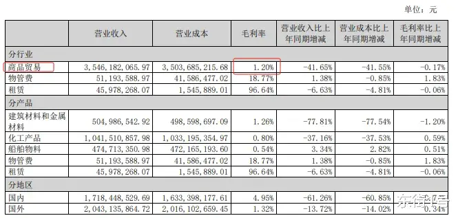 只是,“虚胖”的贸易业务赚的是辛苦钱,毛利率仅1.20%。