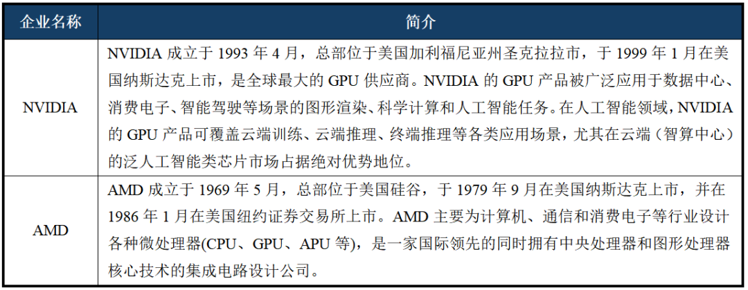 中国市场海外龙头厂商占据绝大部分市场份额。尤其是高性能计算和AI领域,NVIDIA、AMD等国际巨头凭借技术优势和生态壁垒,依然是市场的主导力量。近几年,在资本的加持、人工智能的市场催化以及国家相关政策的支持,国内一批本土GPU厂商涌现并快速成长,这些厂商主要分为几类:一类是具有军工背景或较早从事特定领域图形显控芯片研发的企业,如景嘉微;另一类是近年来成立的初创公司,它们瞄准AI、数据中心等新兴市场,汇聚了海内外顶尖技术人才,如摩尔线程、壁仞科技、天数智芯、沐曦股份、燧原科技等;还有一类是大型科技公司内部孵化或战略布局的芯片业务,如华为海思/昇腾。