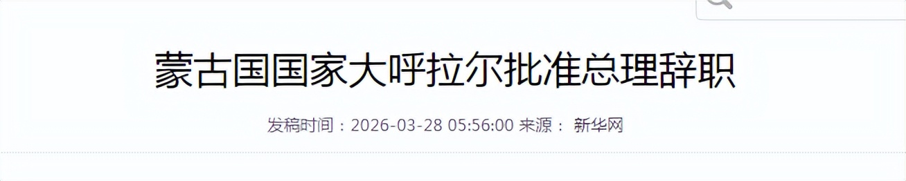 信息来源:新华网——蒙古国国家大呼拉尔批准总理辞职