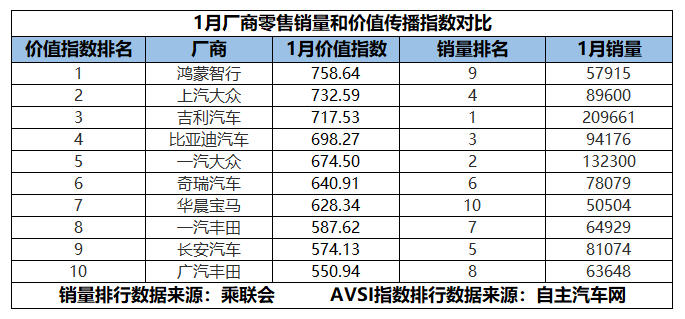 2026年1月的厂商价值传播指数与销量榜单,清晰地勾勒出新年车市的全新竞争格局:价值传播与销量的错位依旧存在,但市场的话语权正在发生转移,合资品牌的强势回归、自主品牌的内部分化、智能品牌的声量领跑,让车市的竞争从单纯的产品与价格比拼,进一步升级为全方位的价值心智之争。