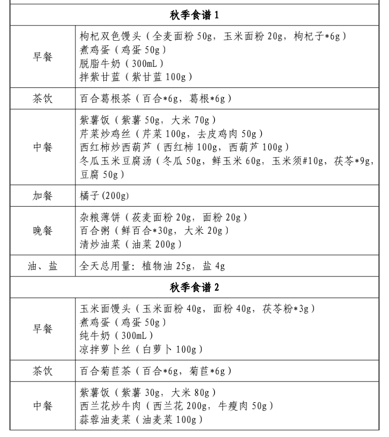 以上食谱,我们日常可以根据自己的实际情况进行适当调整。