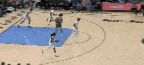 转换进攻中雄鹿的对位没有做精确,杰克逊抓住错位机会直接从底角移至中路接球完成终结。莫兰特本场几次都迅速发现了杰克逊的潜在机会,也打出了一场不错的复出之战。