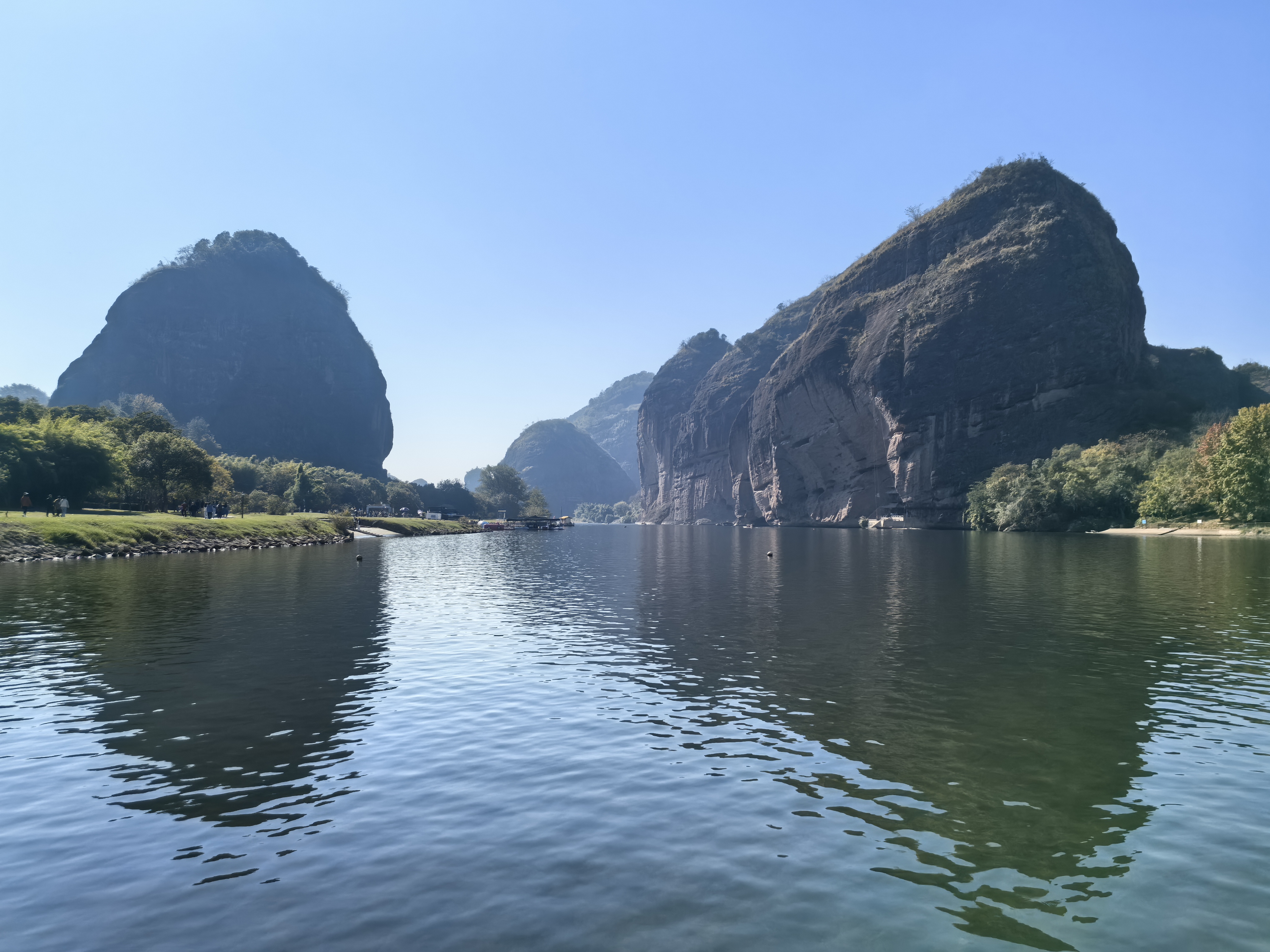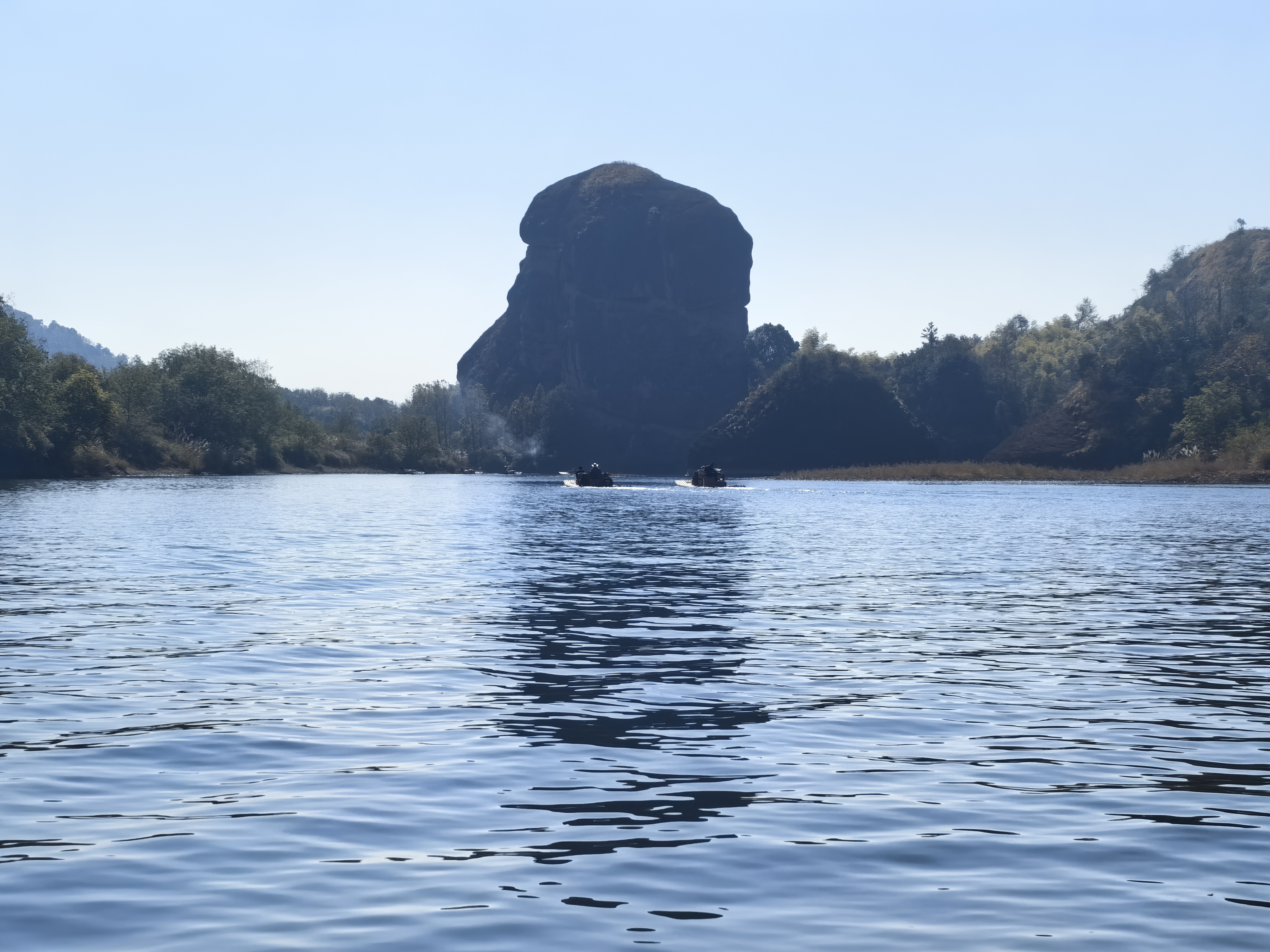升棺表演之后,大批观众前往桃花洲码头乘竹筏漂流,涌入大批的游客,那队伍排的长呀,我几乎都要放弃竹筏漂流,但想起花了100块钱,确是心有不甘。买了一个烤红薯和饮料坐在旁边椅子上慢慢吃喝,耍手机上的新闻。大概过了一个多小时,过去一看等待的人总算少了,也赶紧加入排队。咨询了一下管理人员,一般上午人很多,下午人就少了,如果朋友们想去参加龙虎山的竹筏漂流,也好下午2:00后去,免得排队浪费时间。