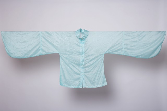 交领右衽大袖衫(明中期,命妇日常礼服,形制上承宋制,覆盖各阶层,无外族文化融合痕迹);