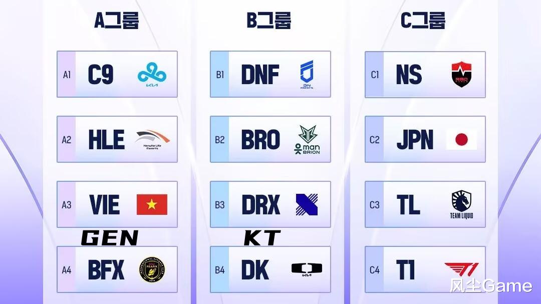 半决赛是BO3双败赛制,最终总决赛在线下打,赛制是BO5,开赛时间是12月6号,赛程持续到14号,具体的分组,LCK也已经官宣了,A组是GEN、HLE、BFX、C9、越南明星队,B组的话,全是LCK本土队伍,T1被分在了C组,这个组只有四队,除了T1还有NS、TL、小日子全明星队。