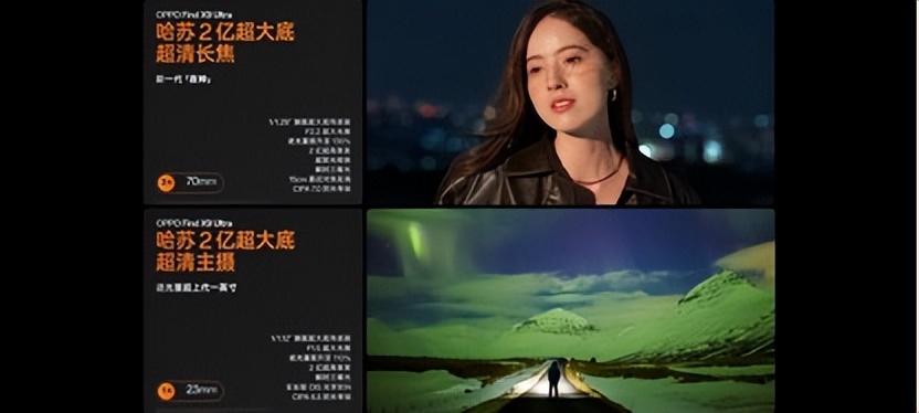 Find X9 Ultra 还搭载了哈苏双 2 亿超大底主摄/长焦的镜头组合。 70mm 哈苏超大底超清长焦首发搭载全新 1/1.28英寸超大底 2 亿像素传感器,配合 F2.2 超大光圈,综合进光量达到前代的136%,是今年目前为止所有厂商中进光量最大的长焦机型。23mm 哈苏超大底超清主摄搭载 1/1.12英寸超大底 2 亿像素传感器,配合 F1.5 超大光圈,综合进光量是前代一英寸主摄的110%,以超越一英寸的画质表现,引领主摄新极限。
