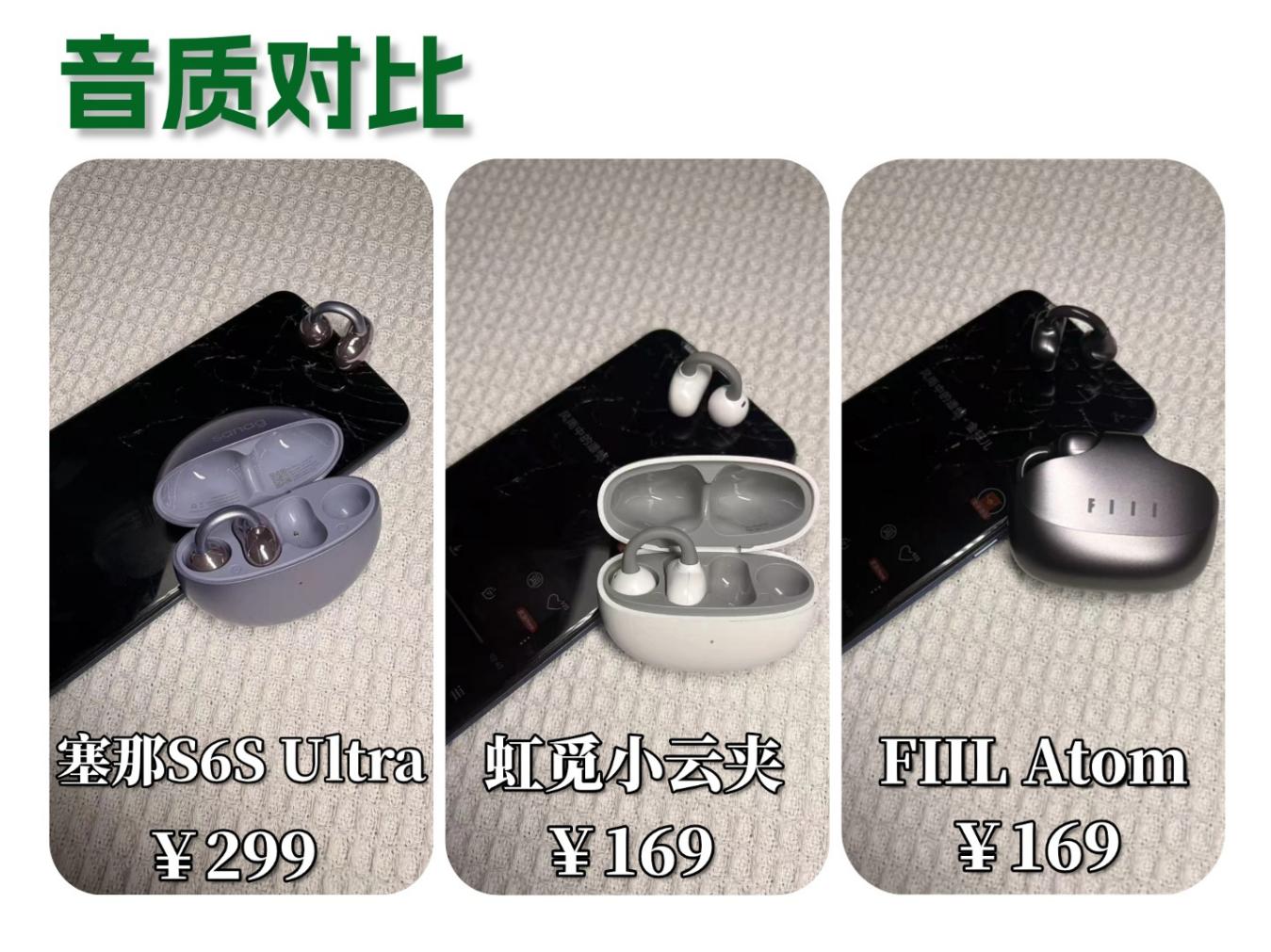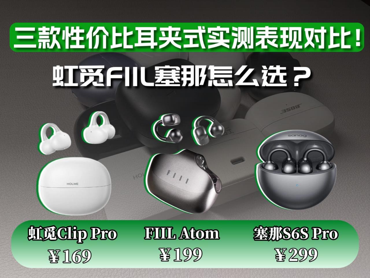我平时常测数码产品,单耳夹式耳机就试过十好几款,对怎么选也算有点经验。这次专门挑了三款近期口碑不错、价格也比较亲民的机型,从戴着舒不舒服、声音好不好听,到一次充电能用多久,都挨个对比了一遍,就是想帮大家弄明白,到底哪款更值。这三款分别是 169 元的虹觅 Air2 小云夹、199 元的 FIIL Atom 和 299 元的塞那 S6S Pro,都是现在卖得挺火的款,看完这份实测,相信你选耳机时能少走些冤枉路