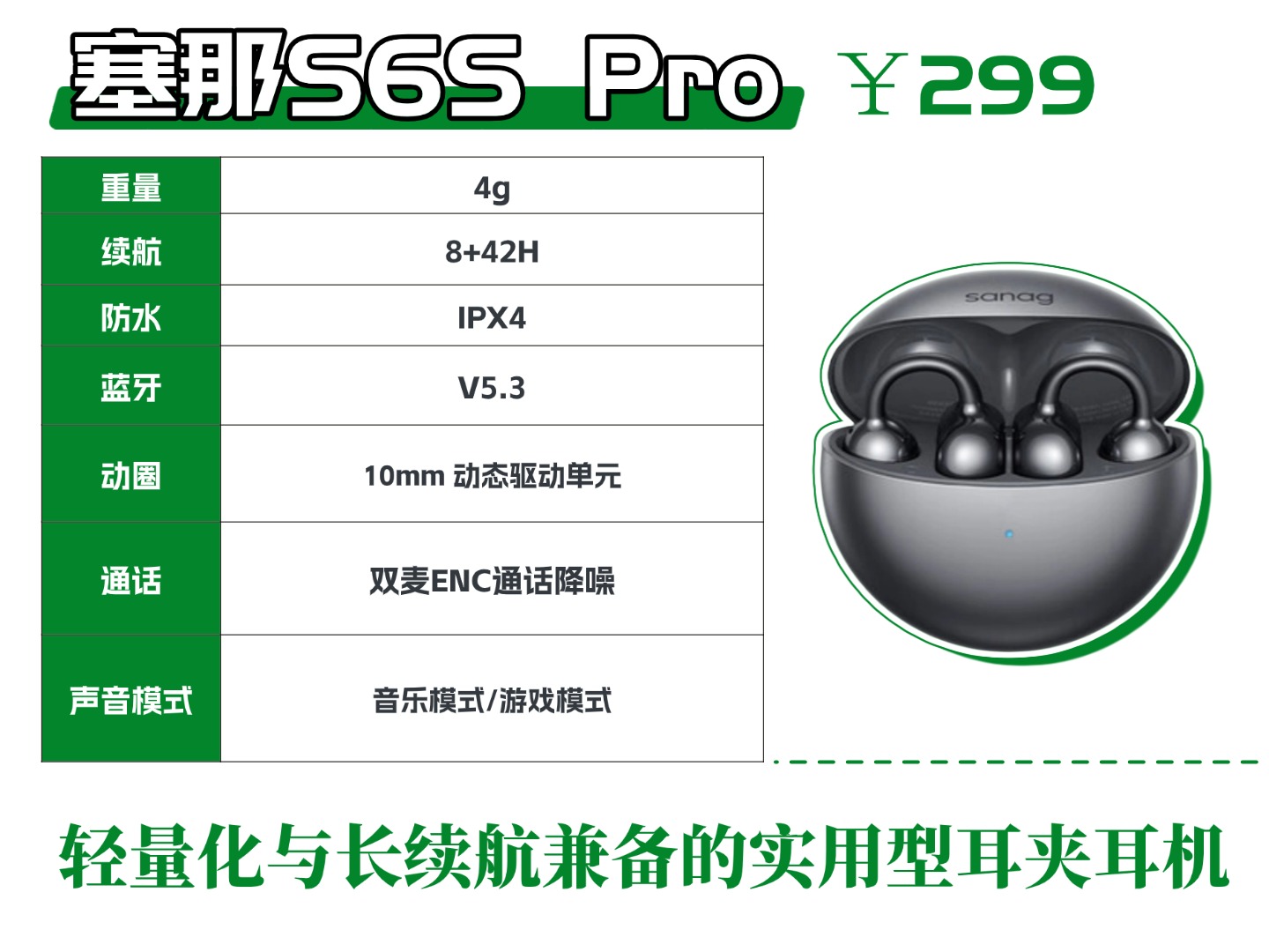 要是你最在意戴得舒服,还希望耳机能多撑几天不用充电,那塞那S6S Pro可以重点看看。它戴久了也没什么不适感,基础功能都能满足,续航还比另外两款强,要是想找个能应对日常各种场景、不用频繁充电的耳机,这款挺合适的。