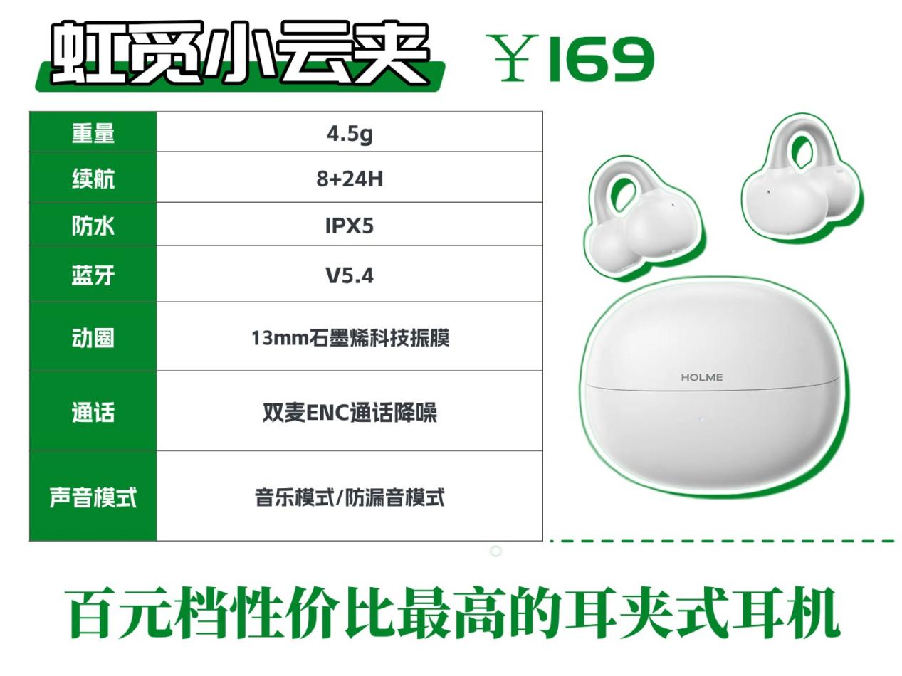总结要是你预算不多,还特别在意实用性,虹觅小云夹肯定是首选。169 块钱能拿到这样的配置已经很值了,尤其是独有的防漏音模式,在办公室、图书馆这种需要安静的地方用着特别省心,综合表现比同价位很多耳机都靠谱,日常用完全够。