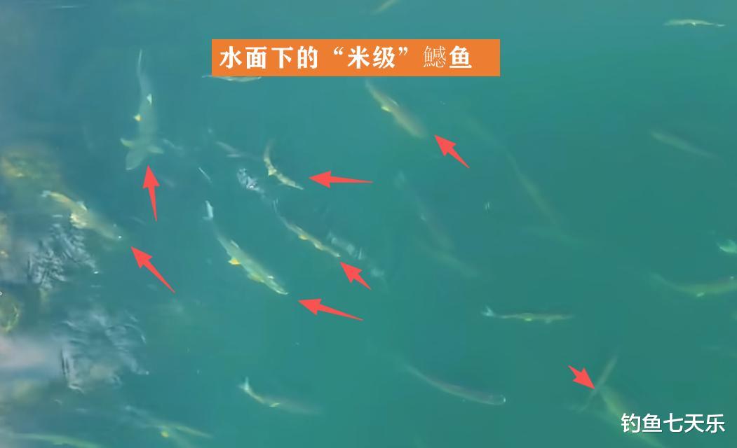 水面这些大鱤鱼一条条都有1米多长,它们浮在水面,就像排好了阵列一样在巡查自己的领地。