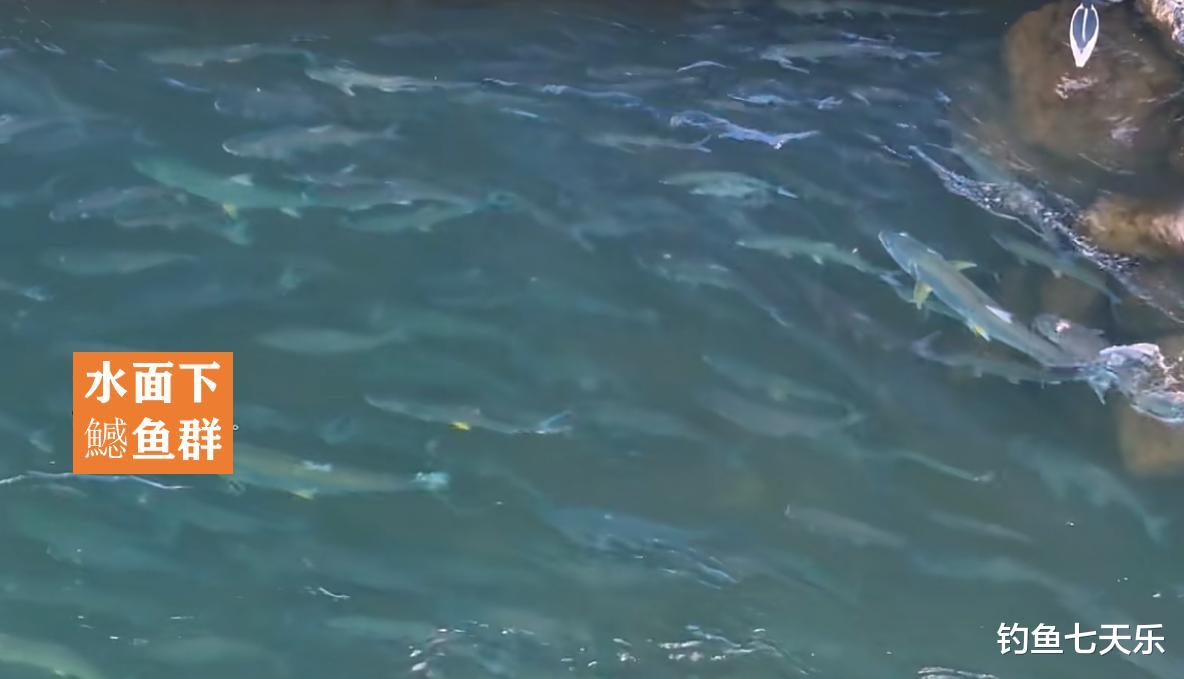 镜头中,一些惊慌失措的鱼儿,纷纷跳出水面逃命,晚一步就可能被它给吃掉。