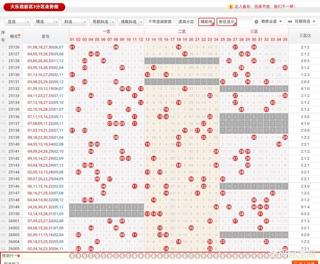 4. 三区分布:上期一区、二区出号稳定,三区仅出一码。本期可观察各区出号力度的微调,看前部与中部区域的号码是否保持活跃。