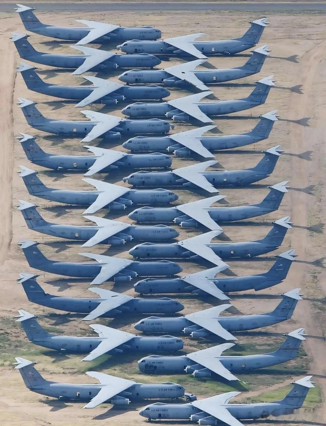 图示:鸟瞰美国“飞机坟场”。停机坪中停放有多架封存的C-141。它们的使命或是为现存的C-141充当备件“奶牛”或是在需要时经过严格的恢复作业重返蓝天。