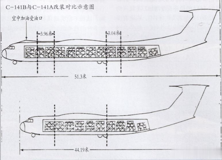 美国空军于1975年向洛克希德公司提供资金,要求后者将1架C-141A改装为机身较长且具备空中加油能力的C-141B型。与C-141A相比,C-141B的货舱面积增大了约21.67平方米,可用空间增加约59.58立方米,能够多装3个货盘。在充分利用空间和载重能力的情况下,3架C-141B的装载量有可能相当于4架C-141A。