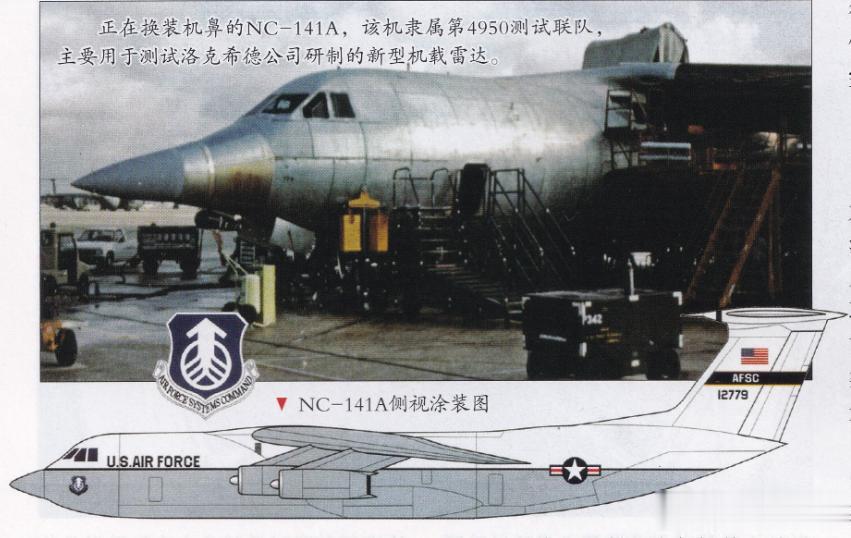 正在换装机鼻的NC-141A,该机隶属第4950测试联队,主要用于测试洛克希德公司研制的新型机载雷达。