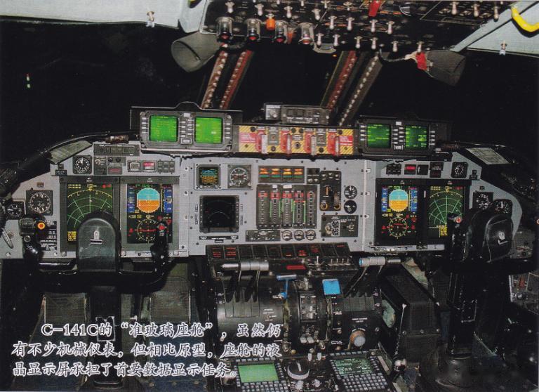 C-141C的“准玻璃座舱”,虽然仍有不少机械仪表,但相比原型,座舱的液晶显示屏承担了首要数据显示任务。