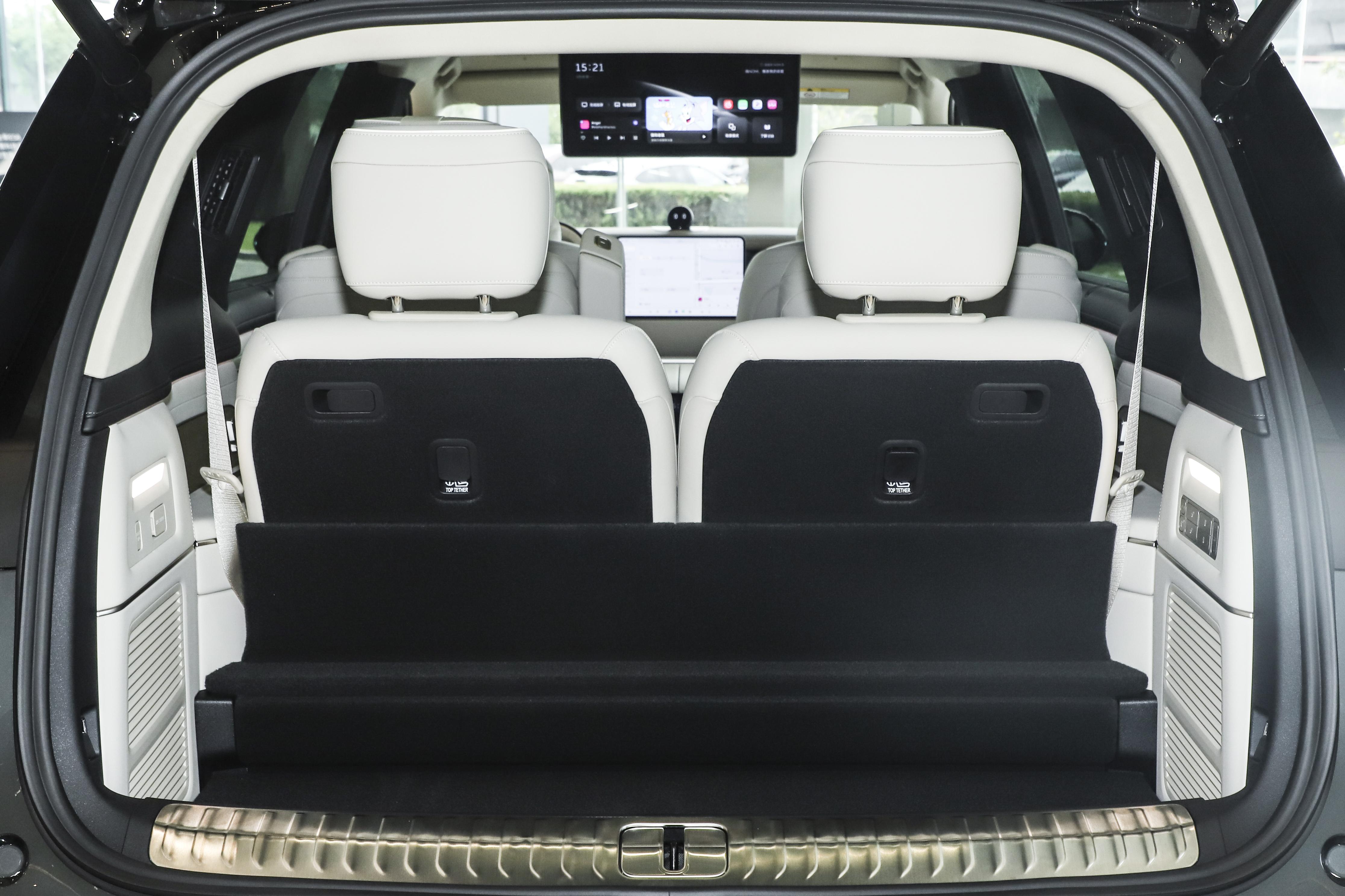 坐进车内,温馨的豪华感扑面而来,浅米色内饰搭配木纹饰板,256色可调氛围灯,营造出类似家中客厅的舒适氛围,全车触手可及 的区域,多采用Nappa真皮或超纤丝绒材质,连第三排与后备箱连接处都用皮质包裹,细节处理比较用心,我让身高180cm ,主驾18向电动调节座椅调整到位后,腿托贴合膝盖,腰托适配腰椎,连续开三小时车程也不会觉得疲惫。