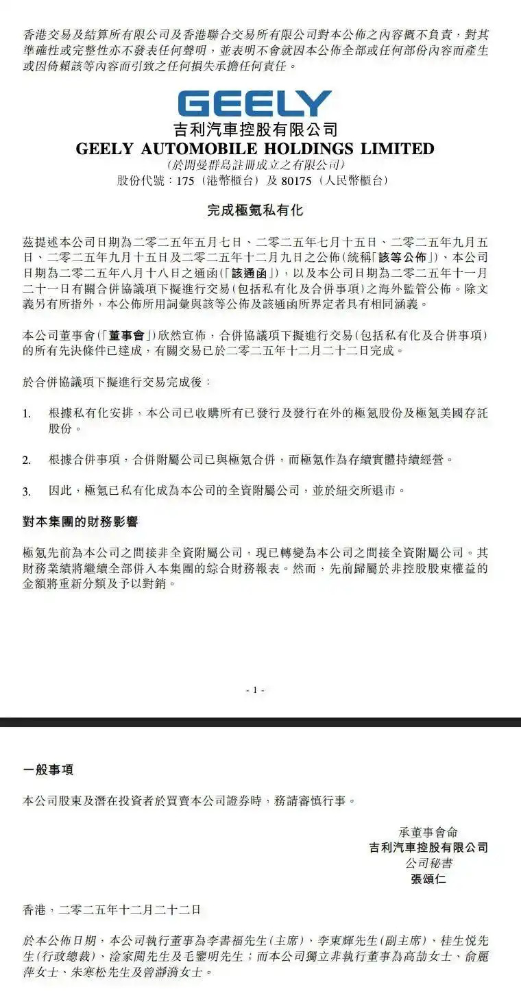 💎 核心总结极氪的退市本质上是一次战略调整,标志着其从独立运营的上市公司,转变为吉利汽车集团深度整合的业务单元。此举有望帮助极氪摆脱短期盈利压力,更专注于产品与技术发展,同时也强化了吉利在高端新能源领域的整体竞争力。